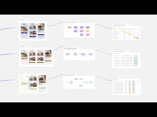 Teams move from thinking to doing without losing momentum. Convert sticky notes into tables, diagrams into documents, or mood boards into prototypes, all in one workspace.