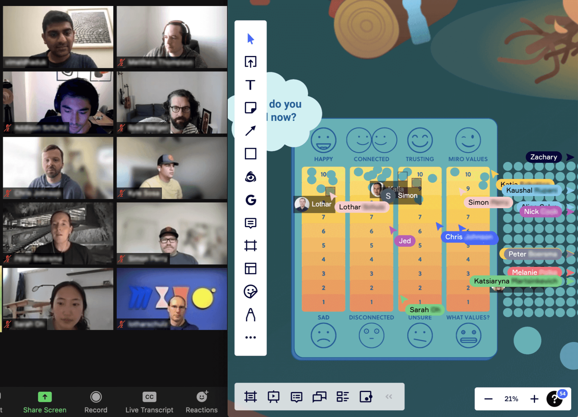 We used agile development and design-thinking frameworks to create our first prototypes of the Miro values. We tested them, iterated, fixed “culture bugs”, and continuously improved them – just like we do with our product.