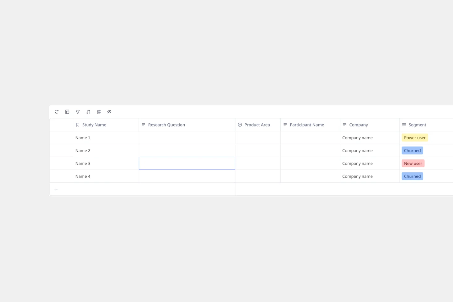 Los equipos a menudo necesitan documentar los hallazgos de las sesiones de pruebas de usabilidad y entrevistas con clientes en una plantilla de investigación de usuarios sistemática y flexible. Recopilar las observaciones de todos en una ubicación centralizada facilita compartir ideas en toda la empresa y sugerir nuevas funciones basadas en las necesidades de los usuarios. Las plantillas de investigación pueden usarse para registrar datos cuantitativos o cualitativos. Cuando tu trabajo es hacer preguntas, tomar notas, aprender más sobre tu usuario y realizar pruebas iterativas, una plantilla de investigación puede ayudarte a validar tus suposiciones, encontrar similitudes entre diferentes usuarios y articular sus modelos mentales, necesidades y objetivos.