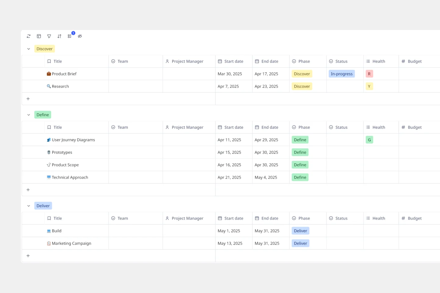 ビジュアル要素を追加: タイムライン、Miro カード、タスクリストなどのビジュアル要素を追加し、プロジェクトチャーターを強化しましょう。これらのツールを使うことで、理解しやすく、わかりやすいドキュメントを作成できます。