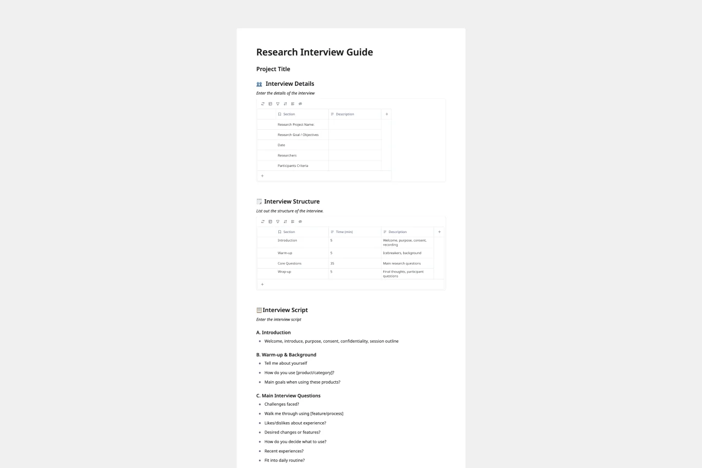 Nasze szablony badawcze i projektowe ułatwiają współpracę przy kompleksowym projektowaniu sprintów, map podróży klienta, szkieletów wireframe i nie tylko. Stwórz wizualne centrum projektu, w którym zbierzesz i uporządkujesz wszystkie niezbędne informacje.
