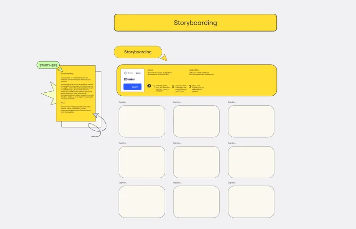 Supercharge your project's vision and streamline your creative flow with Miro's dynamic storyboard templates. Tailored for everyone from filmmakers to instructional designers, our templates are your go-to for structuring scenes and sequences with ease. They ensure your narrative is not just cohesive but downright engaging, keeping your audience hooked from the first frame to the last.